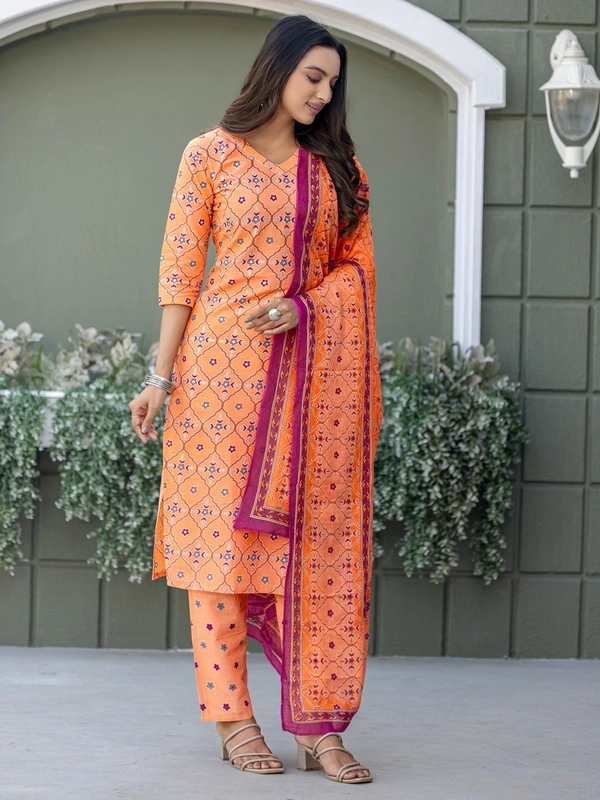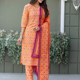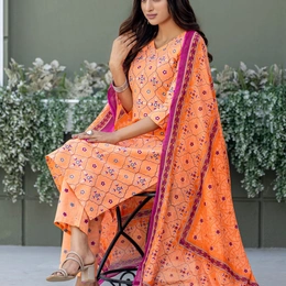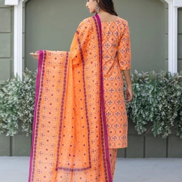 Stay comfortable yet stylish with this Fully Stitched Cotton Blend Kurti Pant Dupatta Set. Made from breathable cotton blend printed fabric, the kurti and pant ensure all-day comfort, while the matching printed dupatta completes the look with elegance. The classic coral shade makes it a versatile outfit for office wear, casual outings, or everyday use.